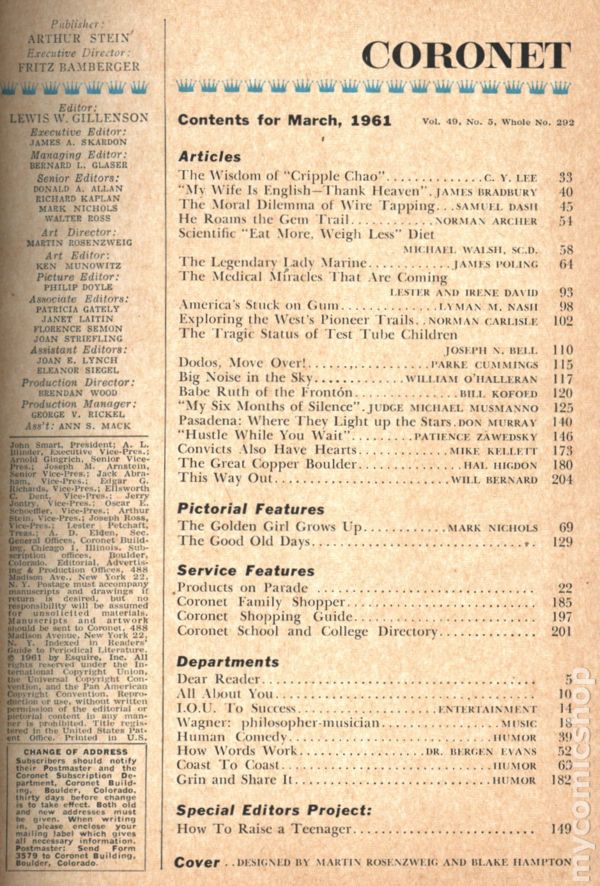 Coronet Magazine (1936 Esquire) comic books 1960-1969