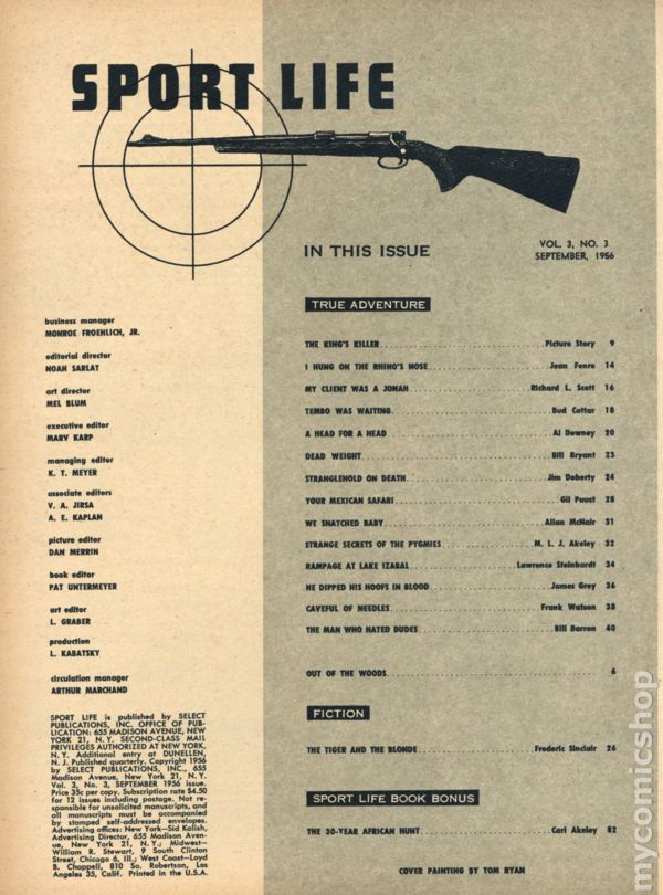 $59 Sport Life Magazine v. 3 #1, Mar. 1956 VG/FN Mort Kunstler Lion Attack Cover! Clicking on the links to the eBay listings shown above and then making a purchase may result in MyComicShop earning a commission from the eBay Partner Network.
