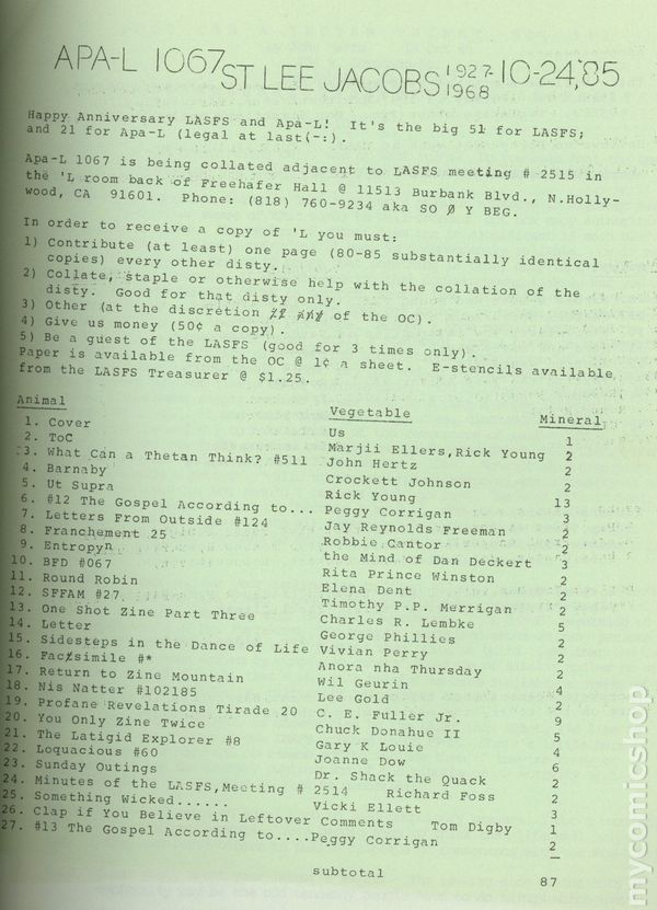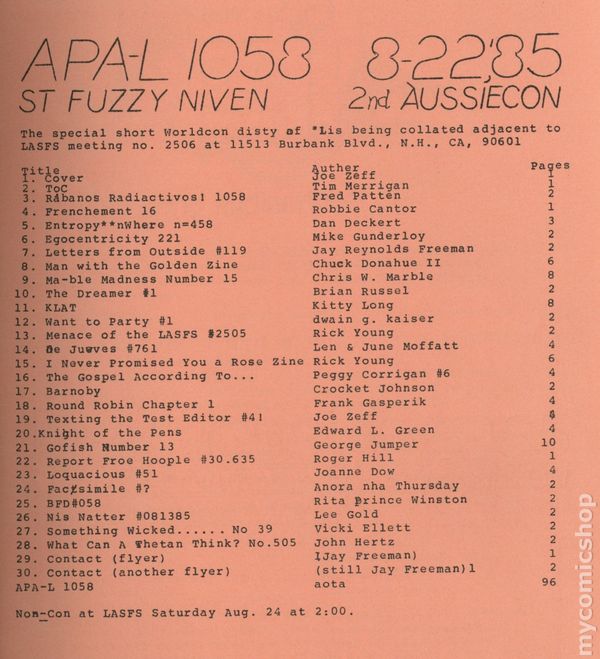 APA-L (1964 LASFS) Fanzine comic books 1970-1985