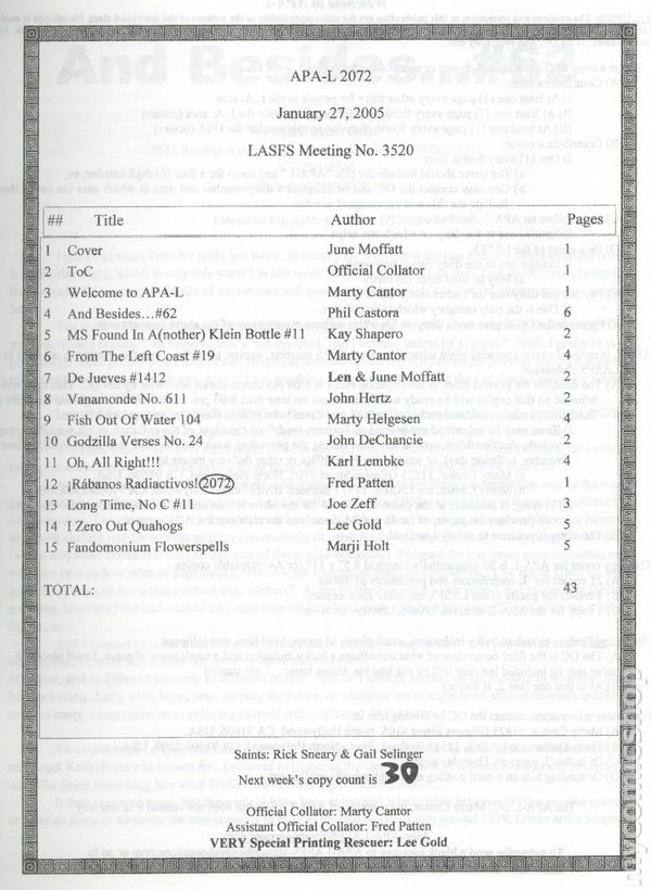APA-L (1964 LASFS) Fanzine comic books 2005