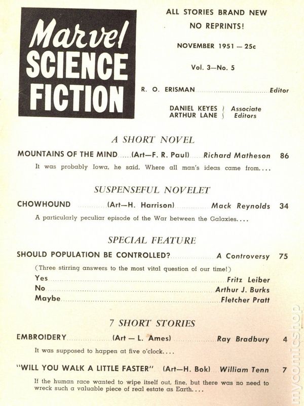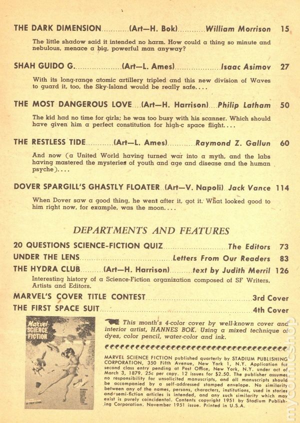 Marvel Science Fiction (1951-1952 Stadium) Pulp / Digest comic books 1955 or before