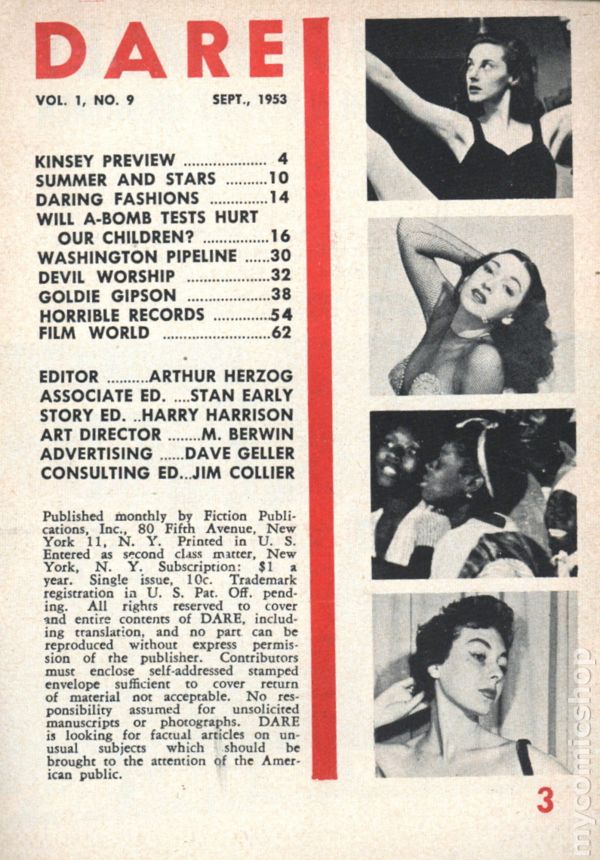 Canadian Edition - Volume 1, Issue 9 - September 1953. Men's interest magazine focusing on Military, Politics, celebrities and showgirls. 4-in. x 6-in., 68 pages, B&W Cover price $0.10.