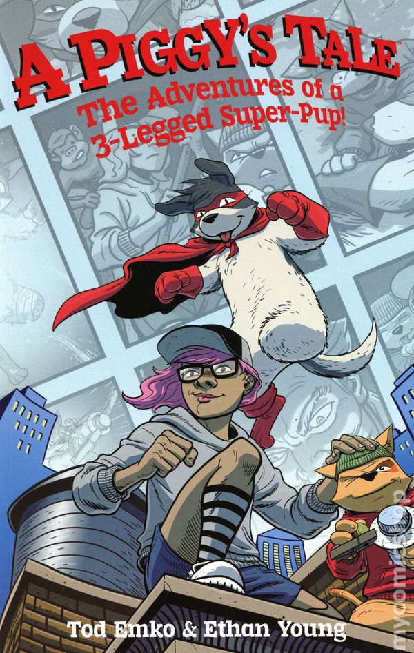 1st printing. Collects Piggy's Tale (2014) #1-4. Written by Tod Emko. Art and cover by Ethan Young. Justice has a new face, and it's adorable! After an accident takes his leg, a pup named Piggy discovers he has super-powers, and becomes the protector of all critters in NYC. Accompanied by a snarky cat and a girl who talks to animals, this heroic trio is ready for adventure! Softcover, 96 pages, full color. Cover price $14.99.