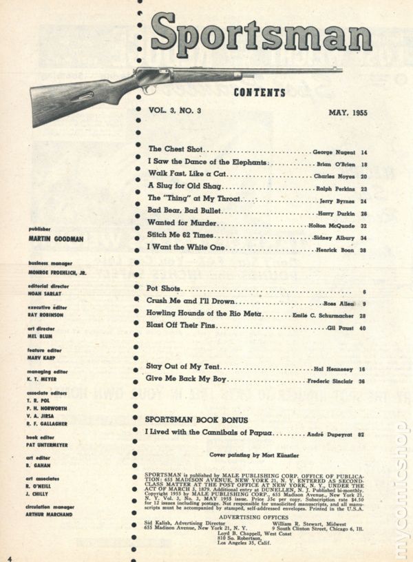 Volume 3, Issue 4 - July 1955. Men's interest magazine focused on tales of daring and hunter's prowess. 8 1/2-in. x 11-in., 100 pages, B&W. Cover price $0.35.