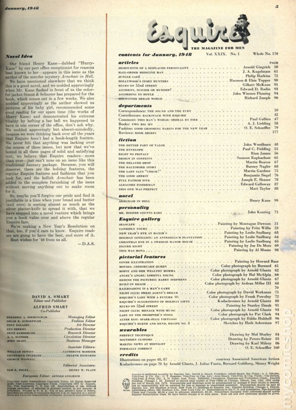 Esquire (1933 Esquire, Inc.) Magazine Vol. 33 #1Published Jan 1950 by Esquire Magazine.