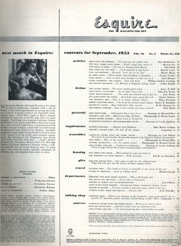 Esquire (1933 Esquire, Inc.) Magazine Vol. 40 #3Published Sep 1953 by Esquire Magazine.