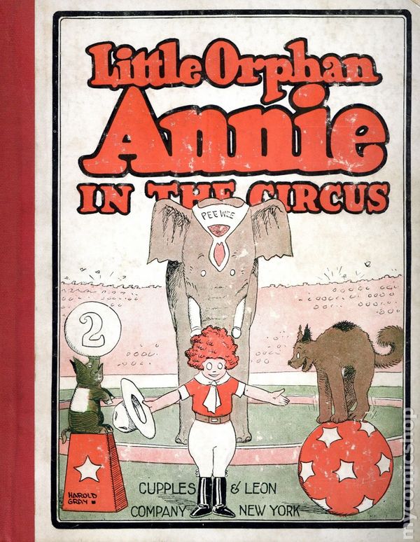 View scansWith dust jacket. Little Orphan Annie in the Circus (1927), written and illustrated by Harold Gray, is a comic published by Cupples & Leon Company. Book 2 in the Little Orphan Annie book series and reprints 1926 strips. Follow the adventures of Little Orphan Annie as she tries to make it big in the circus. Hardcover with dust jacket, 92 pages, 6-in x 8.75-in., no cover price.