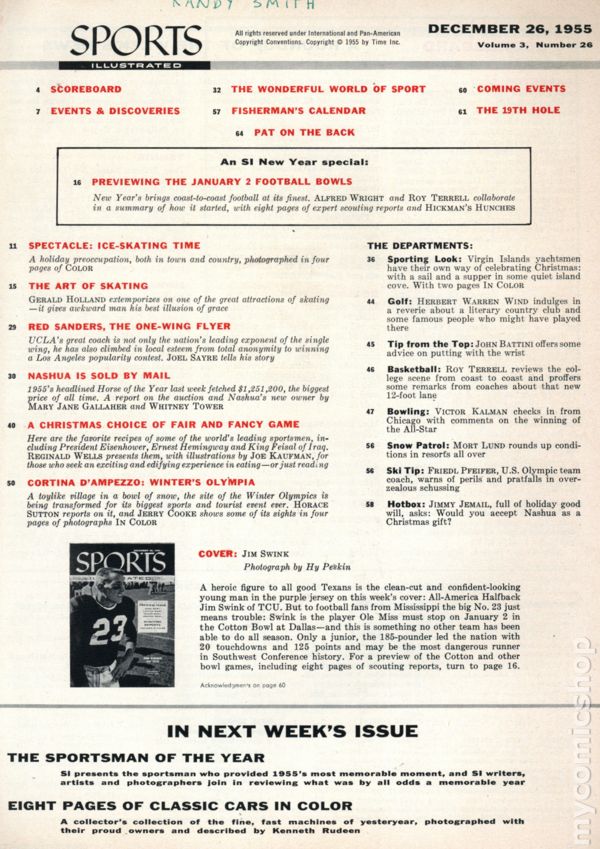 Vol. 3, #26 - December 26, 1955. Various articles and images related to sports. 8 1/2-in. x 11 1/2-in., 66 pages, PC/PB&W. Cover price $0.25.