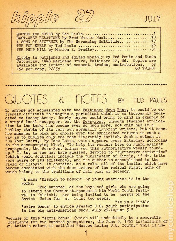 Kipple (1960-1984 Ted Pauls) Fanzine comic books 1960-1962