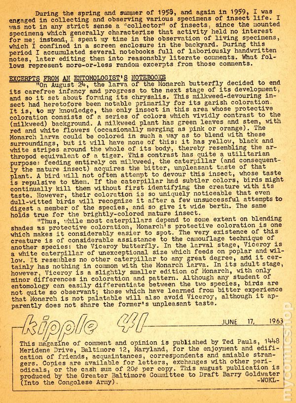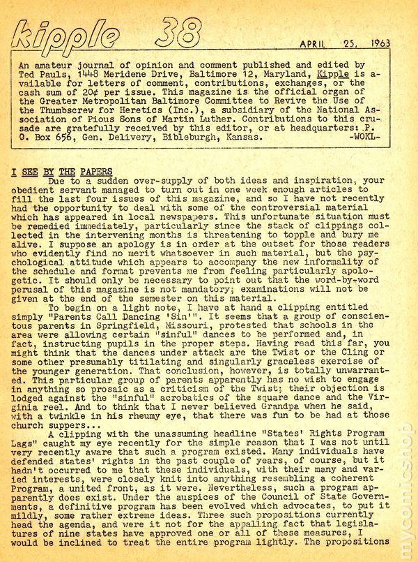 Kipple (1960-1984 Ted Pauls) Fanzine comic books 1963