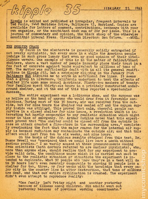 Kipple (1960-1984 Ted Pauls) Fanzine comic books 1963-1965