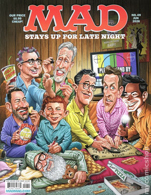 (W) The Usual Gang Of Idiots (A) The Usual Gang Of Idiots (CA) An Idiot With A Pen Tool STAY UP LATE AND BINGE-READ THE NEW ISSUE OF MAD! Keep your giggles going way into the wee hours by turning off all your devices and flipping through MAD #49! This issue skewers late night television, online banter, and everything pop culture! Featuring new MAD favorites like MAD Look at... by Sergio Aragones, Spy vs. Spy, and a new Fold-In by Johnny Sampson. Includes more new MAD content too. Plus, a whole slew of classic MAD movie and TV parodies from the Usual Gang of Idiots. MAD #49 will surely cure what ails you with a shot of humor in the jugular vein. Cover price $5.99.