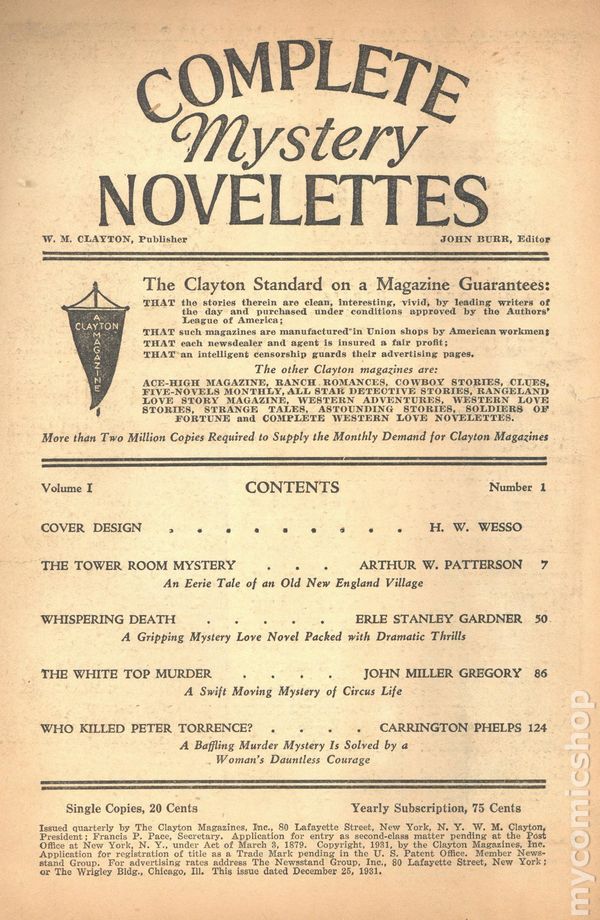 Complete Mystery Novelettes (1931-1933 Clayton Magazines) Pulp comic books 1955 or before