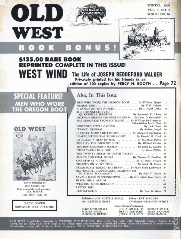 Spring 1970. True stories about the Old West. 8-in. x 11-in., 96 pages, B&W.