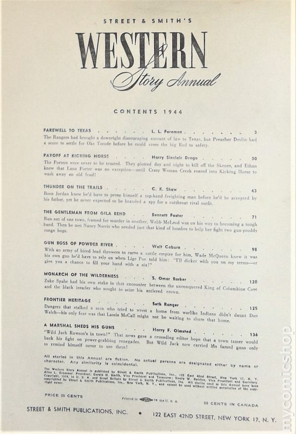Western Story Annual (1941-1950 Street & Smith) Pulp comic books 1944