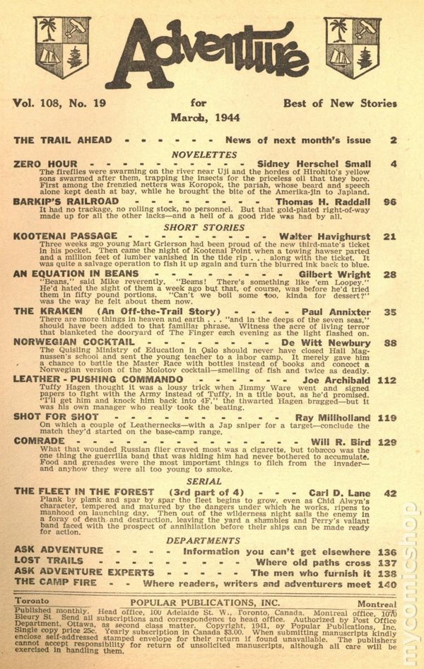 Adventure (1910-1971 Popular Publications) Canadian Edition comic books 1938-1959