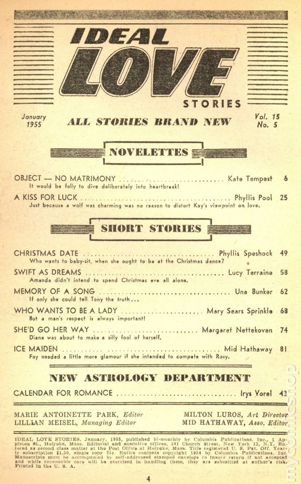 Ideal Love (1941-1960 Double-Action) Pulp comic books 1955