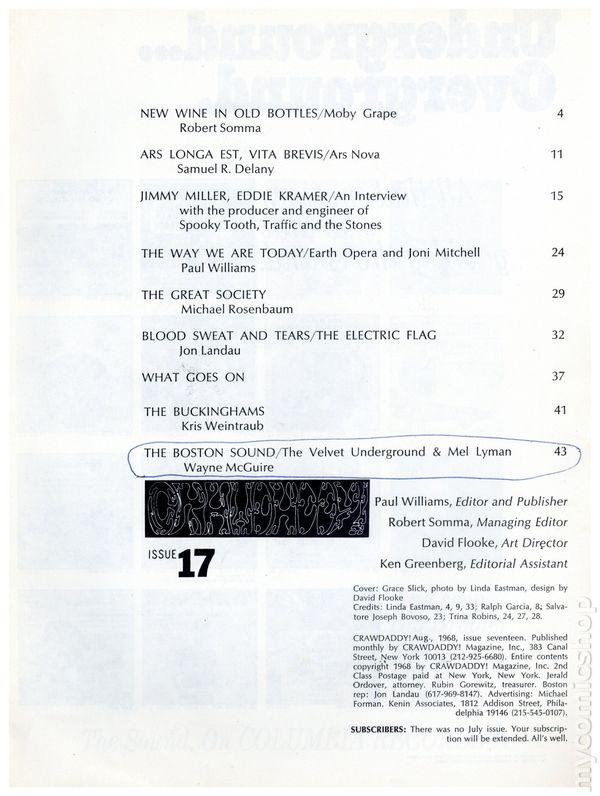 Crawdaddy Magazine (1966-1979 Crawdaddy Publishing Co.) comic books 1960-1969