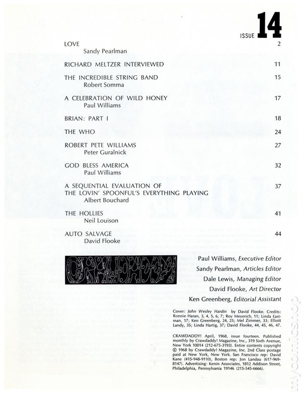 Published Aug 1968 by Crawdaddy Publishing Co..