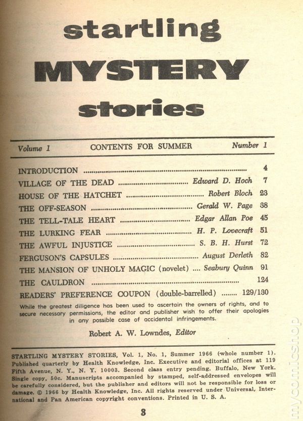 Startling Mystery Stories (1966-1971 Health Knowledge) comic books 1966