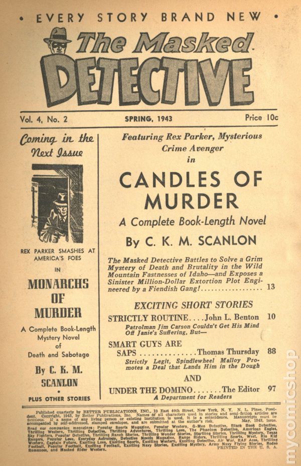 Masked Detective (1940-1943 Better Publications) Pulp comic books 1943