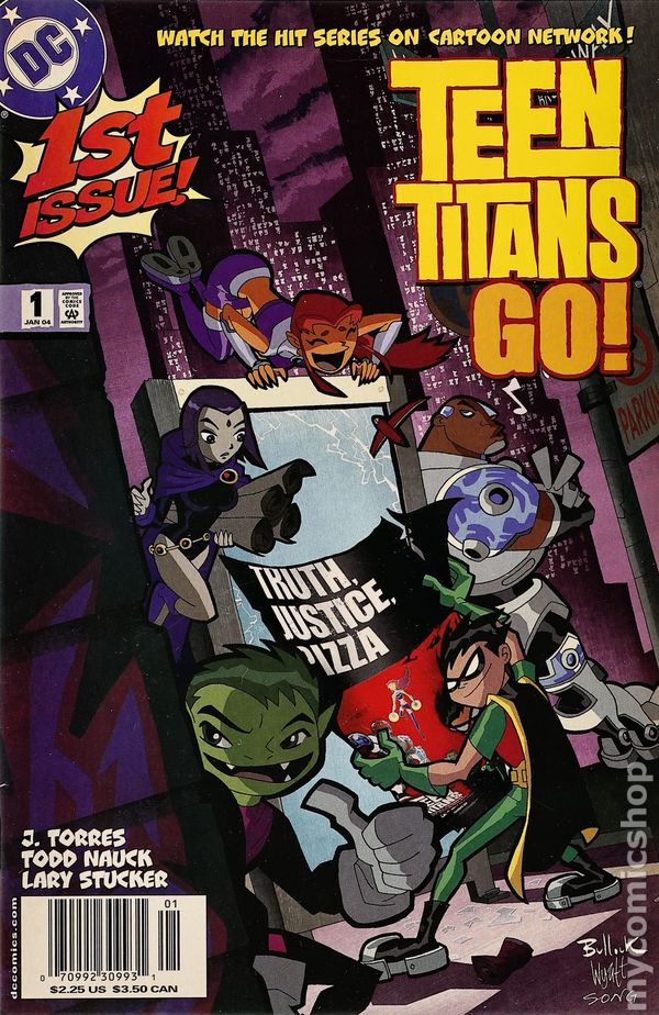 First printing. Newsstand Edition. WRITTEN BY J. TORRES, ART BY TODD NAUCK AND LARY STUCKER; COVER BY DAVE BULLOCK In stores November 26. From Cartoon Network, it's TV's hottest new super-team! Join Robin and his band of teenage heroes: the brave Cyborg, funny guy Beast Boy, the naive but seriously hot (and way powerful) Starfire, and the moody goth-girl Raven as they battle for truth, justice and pizza! FC, 32 PG.$2.25 Cover price $2.25.