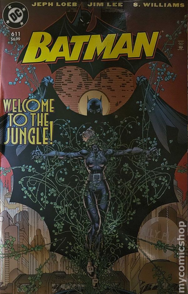 Written by Jeph Loeb. Art by Jim Lee, Scott Williams. Cover by Jim Lee, Scott Williams. Struggling to solve the riddle of the mysterious mastermind behind all his recent battles, Batman sets out to apprehend the Riddler--with a friendly assist from Nightwing! Some heartfelt advice from the former Boy Wonder prompts the Caped Crusader to make a momentous decision in his burgeoning relationship with Catwoman! 32 pages, full color. Rated T+ Cover price $3.99.