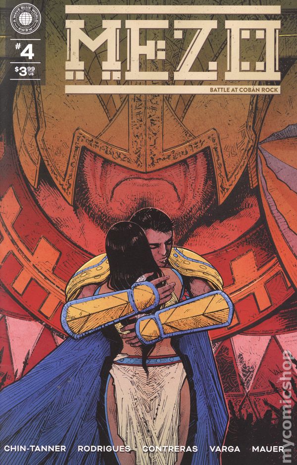 Written by Tyler Chin-Tanner. Art by Josh Zingerman and Doug Garbark. Cover by Claudia SG Iannicello. The rise of the Tzalekuhl Empire disrupts the peace across the land of Mezo. When the conquest begins, a young girl named Kyma witnesses the death of her father, a tribal leader who refused to yield. As the solar eclipse nears, Kyma must unite the various tribes against an emperor determined to make them all kneel before his god or be sacrificed in his name. Mezo, a new fantasy epic set in a Mesoamerican-inspired world begins here! 32 pages, full color. Rated T Cover price $3.99.