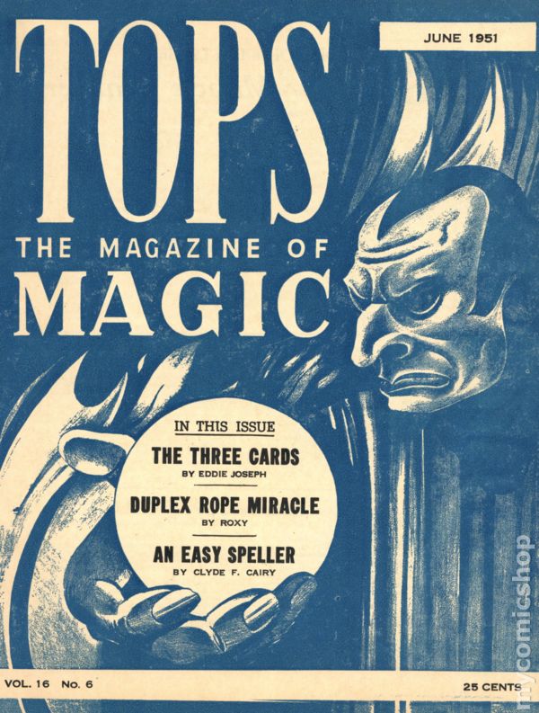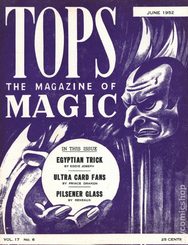 Tops was a Magic Periodical first published in January 1936 by the Abbott Magic & Novelty Company for magic enthusiasts. 8.5" x 11", 28 pages, B&W. Cover price $0.25.