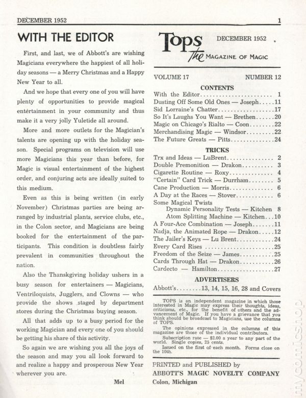 Tops (1936-1957 Abbott Magic & Novelty Co.) Vol. 17 #12Published 1952 (est.) by Abbott Magic & Novelty Co..
