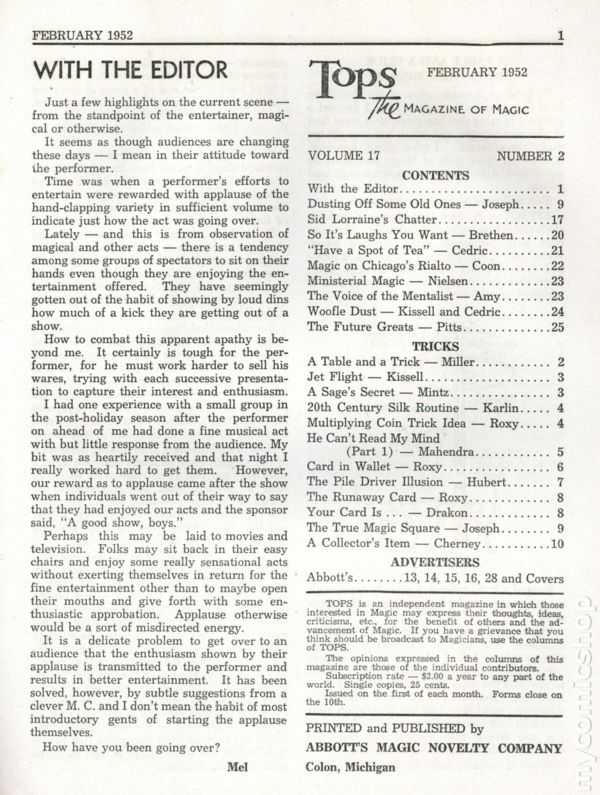 Tops (1936-1957 Abbott Magic & Novelty Co.) Vol. 17 #2Published 1952 (est.) by Abbott Magic & Novelty Co..