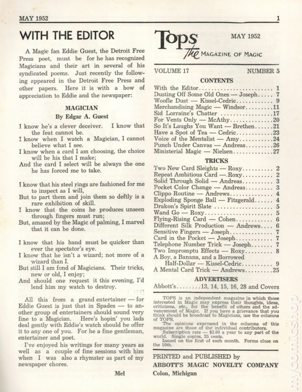 Tops (1936-1957 Abbott Magic & Novelty Co.) Vol. 17 #5Published 1952 (est.) by Abbott Magic & Novelty Co..