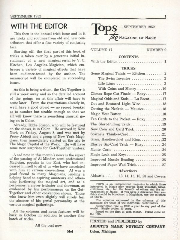 Tops (1936-1957 Abbott Magic & Novelty Co.) Vol. 17 #9Published 1952 (est.) by Abbott Magic & Novelty Co..