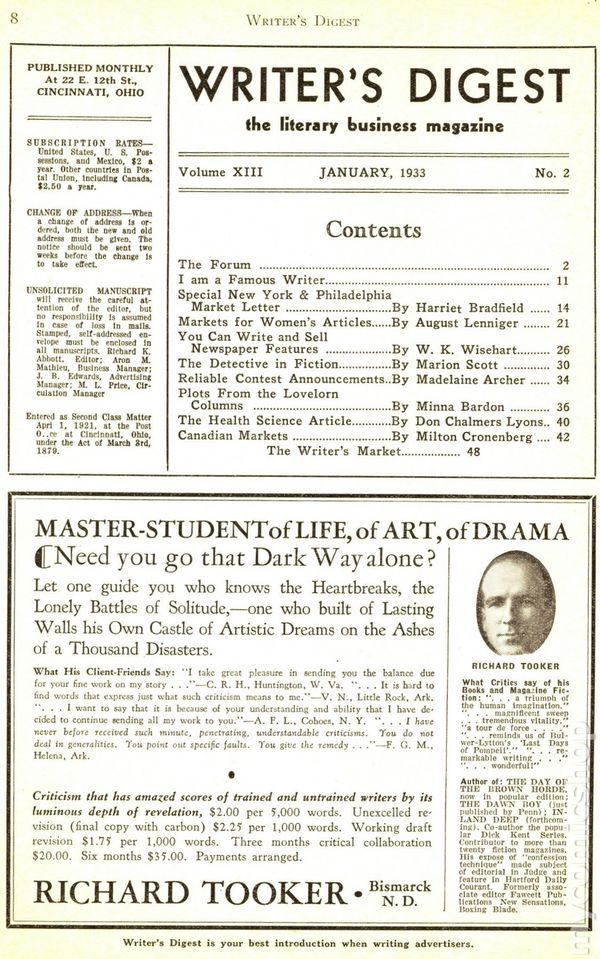 Writer's Digest (1921-Present F+W Publications) comic books 1933