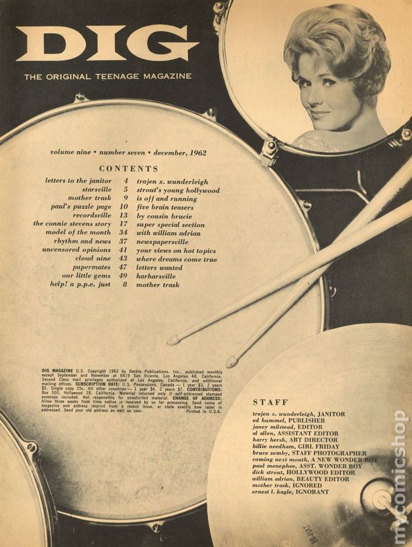 Vol. 9, No. 7 - December 1962. Magazine for teenagers circa 1960's. Features articles and editorials on the times big names. 68 Pages, B&W/C. Cover price $0.25.