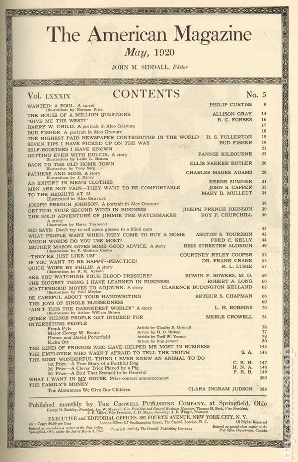 American Magazine (1906-1956 John S. Phillips/Crowell) comic books 1920