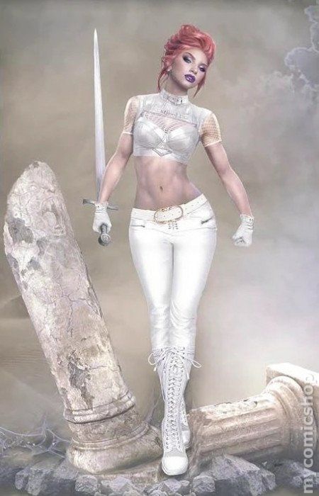 Comic Mint and Trinity Comics exclusive virgin cover by Will Jack. Written by Christopher Priest. Art by Jae Lee and Gabriel Ibarra. Spinning out of the current hit series, VAMPIRELLA! Four women are lured to rural Georgia as part of a mysterious scheme to defend an impoverished farming town which finds itself under siege by zealots. But this isn't just any impoverished farming town, and these aren't just any four women. The all-new Draculina, Pantha, Nyx, and Chastity have been brought together in Ashthorne in an effort to avert all-out war against nearby Sacred, Georgia. But Ashthorne has a deadly secret, Sacred has a deadly purpose, and lurking in the shadows is Lilith, the immortal sorceress and mother to Vampirella. 32 pages, full color. Rated T+ Cover price $3.99.