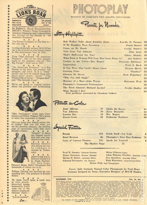 Photoplay (1946-1982 MacFadden) 2nd Series Vol. 25 #6Published Nov 1944 by MacFadden Publications.