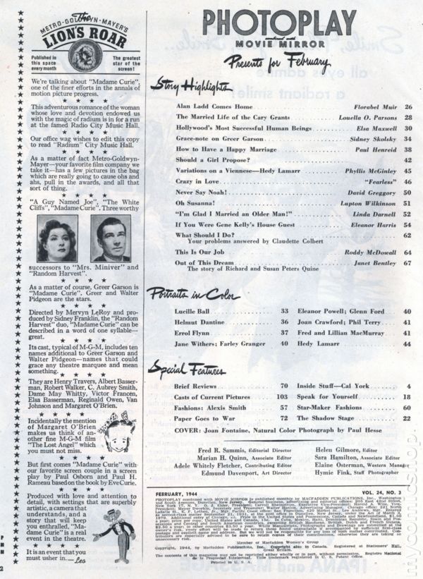 Photoplay (1946-1982 MacFadden) 2nd Series Vol. 24 #3Published Feb 1944 by MacFadden Publications.