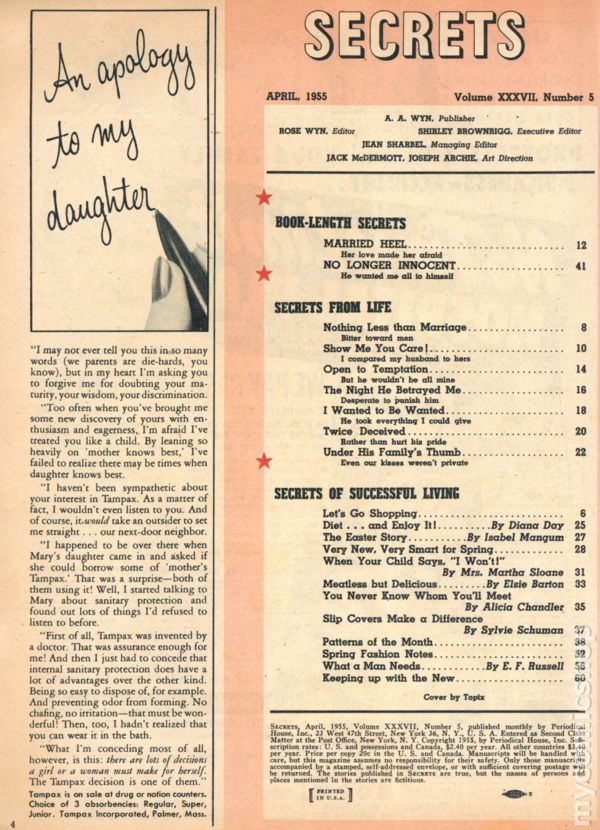 Secrets (1936 Periodical House, Inc) Vol. 37 #5Published Apr 1955 by Periodical House.