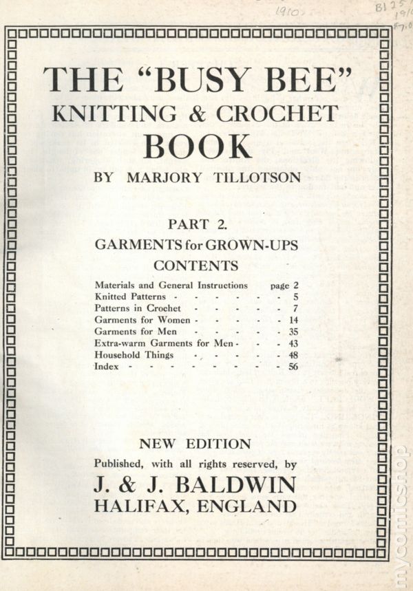 Busy Bee Knitting and Crochet Book (J & J Baldwin) UK Edition comic books 1955 or before