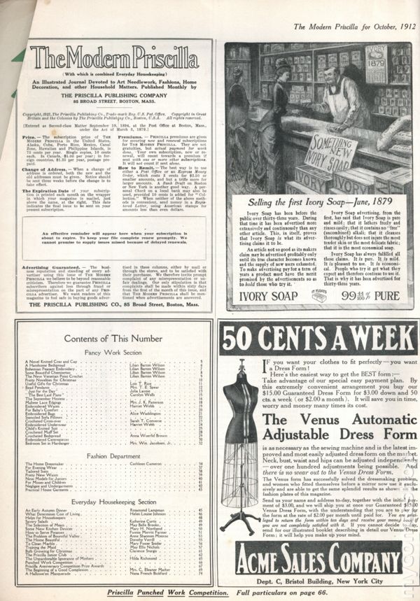 Women's magazine with emphasis on needlework and homecrafts. 10.25" x 14".Black and white. Cover price $0.10.