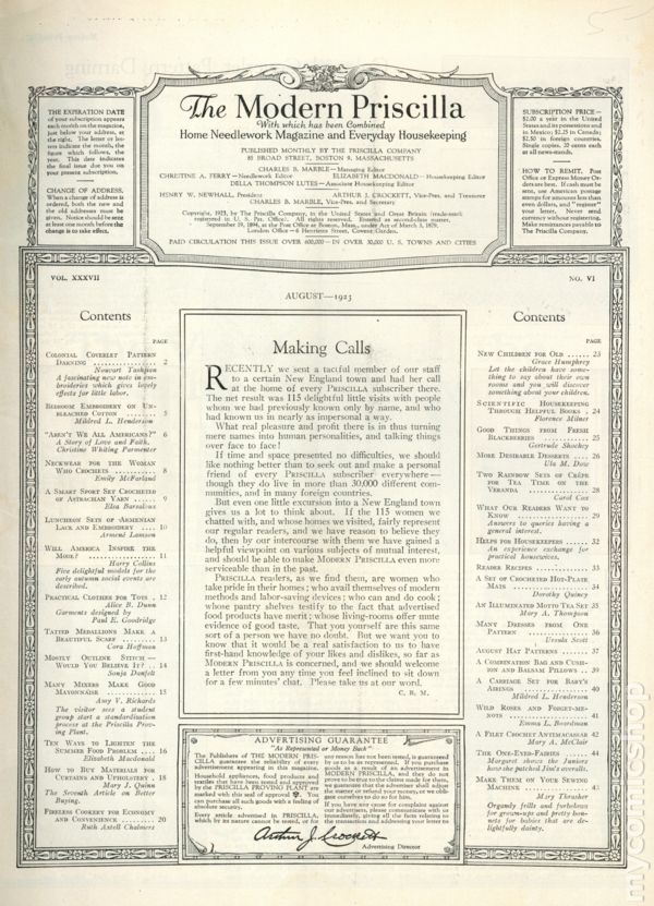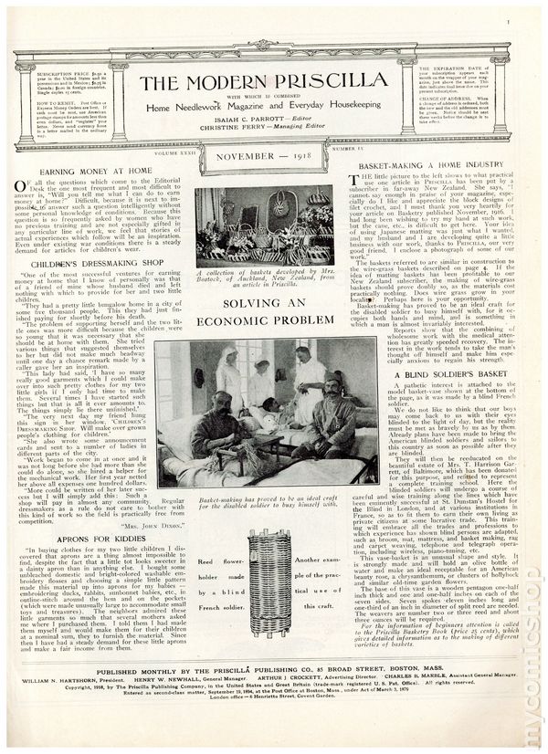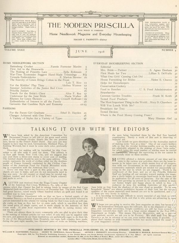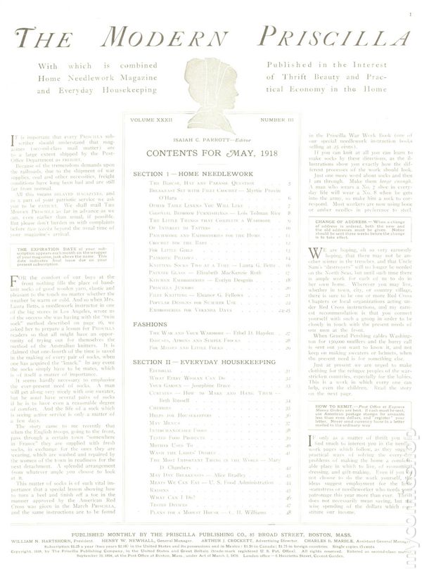 May 1922. Women's magazine with emphasis on needlework and homecrafts. 10.25" x 14", 64 pages, Black and white. Cover price $0.20.