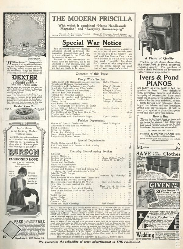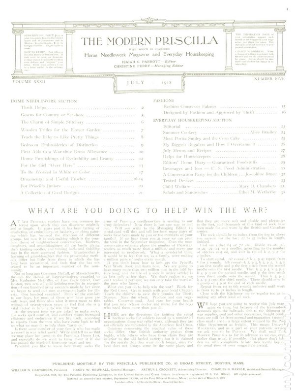 Women's magazine with emphasis on needlework and homecrafts. 10.25" x 14", 76 pages, Black and white. Cover price $0.20.