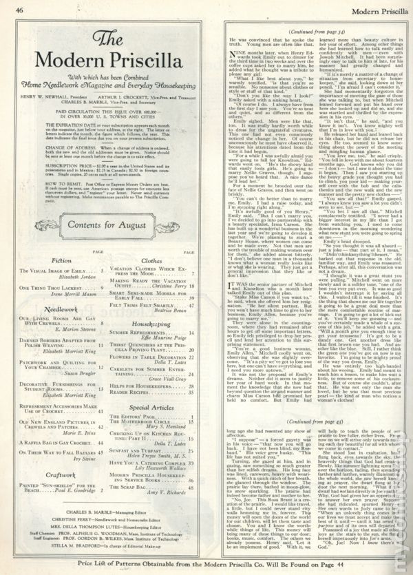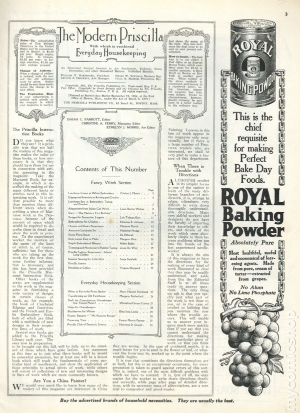 Women's magazine with emphasis on needlework and homecrafts. 10.25" x 14", 52 pages, Black and white. Cover price $0.20.
