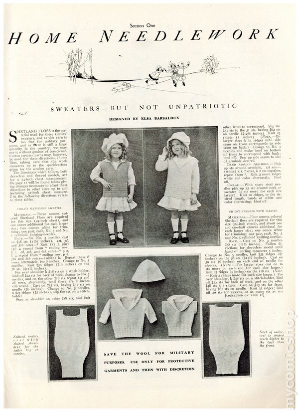 Women's magazine with emphasis on needlework and homecrafts. 10.25" x 14", 80 pages, B&W. Cover price $0.20.