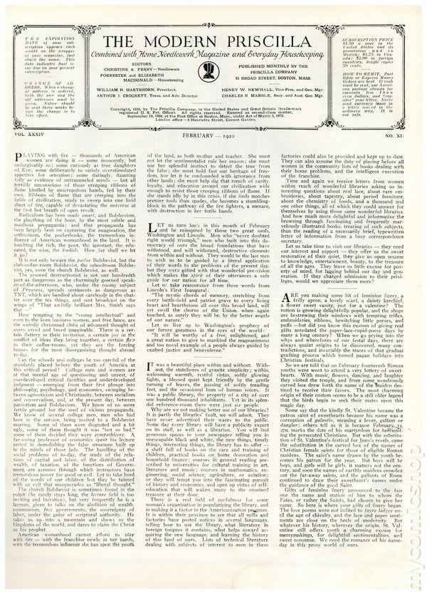 Women's magazine with emphasis on needlework and homecrafts. 10.25" x 14", 72 pages, B&W. Cover price $0.20.