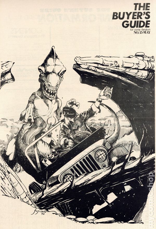 The Buyers Guide for Comic Fandom #15 - May, 1972. Cover artist Fujitake. Page 38 features a half-page ad from Buddy Saunders who, years later, would open the first Lone Star Comics store in Arlington, Texas. 60 pages in two sections, B&W on newsprint.