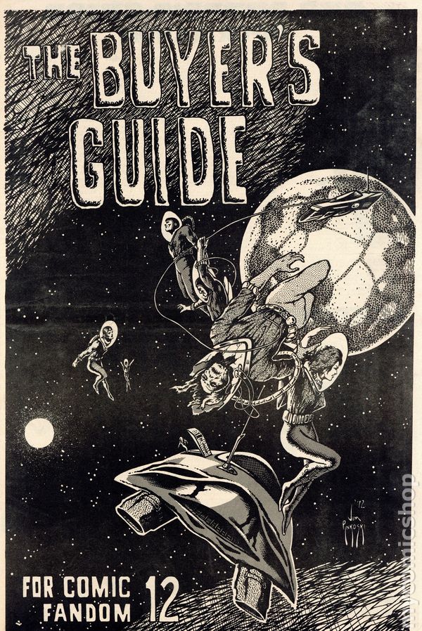 The Buyer's Guide for Comic Fandom #12 (Feb, 1972) is an early-era comics ad zine featuring comic for sale lists and ads for the many fan publication of the period. Page 30 features a half-page ad from Buddy Saunders who, years later, would open the first Lone Star Comics store in Arlington, Texas. 36 pages, black and white on newsprint, tabloid 11.5-in. x 17.5-in. NOTE: Early issues were mailed free to interested comic collectors; back issues could be ordered at 25c ea. Later the publication moved to paid subscriptions.
