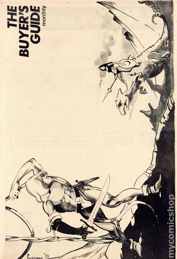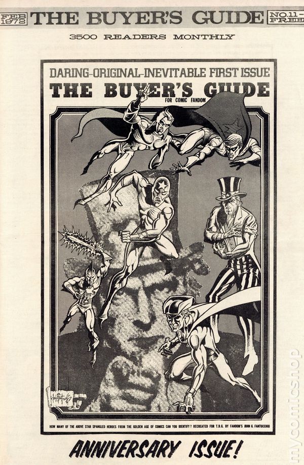 Time left: 3d 17h 12mThe Buyer's Guide for Comic Fandom #11 (Jan, 1972) is an early-era comics ad zine featuring comic for sale lists and ads for the many fan publication of the period. Page 5 features a half-page ad from Buddy Saunders who, years later, would open the first Lone Star Comics store in Arlington, Texas. 24 pages, black and white on newsprint, tabloid 11.5-in. x 17.5-in. NOTE: Early issues were mailed free to interested comic collectors; back issues could be ordered at 25c ea. Later the publication moved to paid subscriptions.